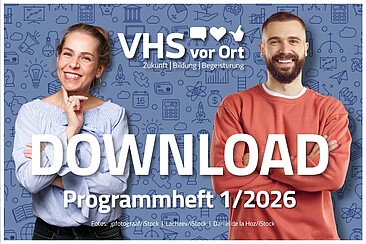 Wir möchten sicherstellen, dass alle Bildungsinteressierten unser Programm einsehen können – sowohl digital als auch in gedruckter Form. Um gleiche Chancen zur Buchung der Kurse für alle zu gewährleisten, ist eine Anmeldung zu Kursen und Veranstaltungen daher erst nach Veröffentlichung des gedruckten Programmheftes ab Donnerstag, 8. Januar 2026, um 7:30 Uhr möglich – online oder über unsere VHS- und Bürgerbüros.