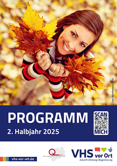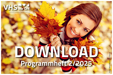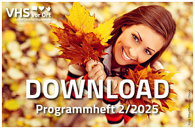 Unser Programmheft für das zweite Halbjahr 2025 ist bereits digital verfügbar! Der 260 Seiten starke Katalog mit 660 Kursen und Veranstaltungen im Zeitraum von September bis in das kommende Jahr hinein steht bereits jetzt als Download zur Verfügung.